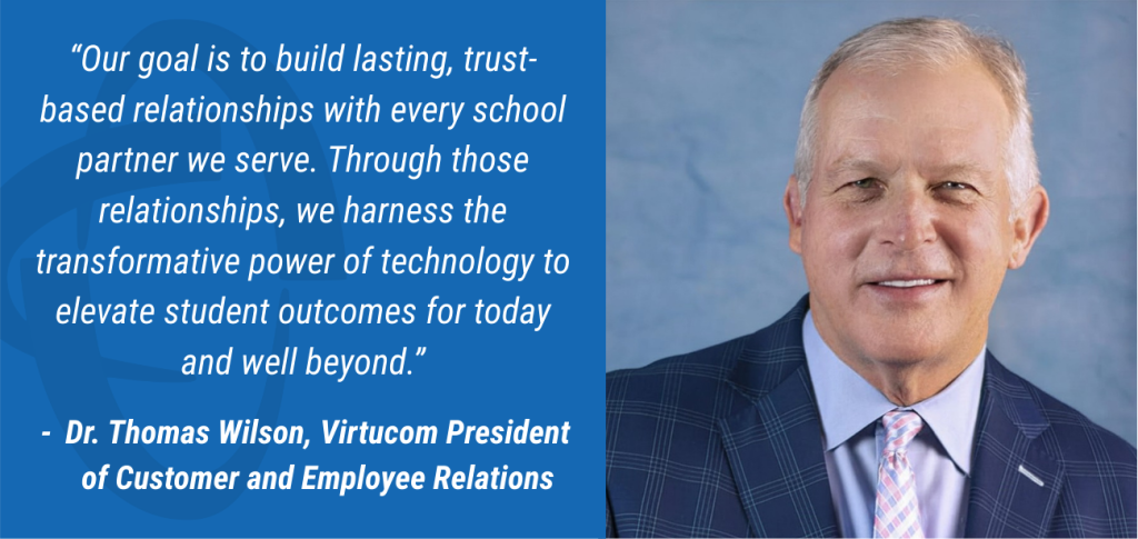 Virtucom provides personalized EdTech solutions & services to K-12 school systems across the country. We aim to build trusting relationships with our schools & strive to enhance student success with the power of technology.
